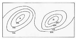 Quand les isobares se referment sur un même centre et que ce centre a une pression atmosphérique inférieure à la pression atmosphérique "périphérique", on est en présence d'une dépression.