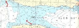5) Calculer, pour chaque carte et en tenant compte de l’échelle, la distance à parcourir en mer (en kilomètres et en milles nautiques) pour aller du point A au point B :