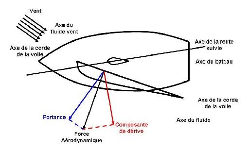 Retrouver la représentation de la force aérodynamique et de ses composantes qui correspond au dessin du bateau.