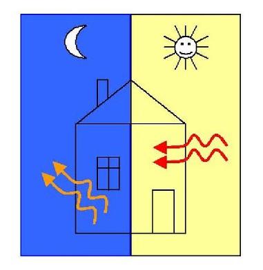 - Un mur en pierre qui a été exposé au soleil, reste chaud pendant un certain temps même si il n’est plus en contact direct avec le rayonnement solaire. En s’adossant contre le mur, on ressent la chaleur emmagasinée par la pierre. La quantité de chaleur emmagasinée par le mur dépend de la nature des matériaux de constructions utilisés.